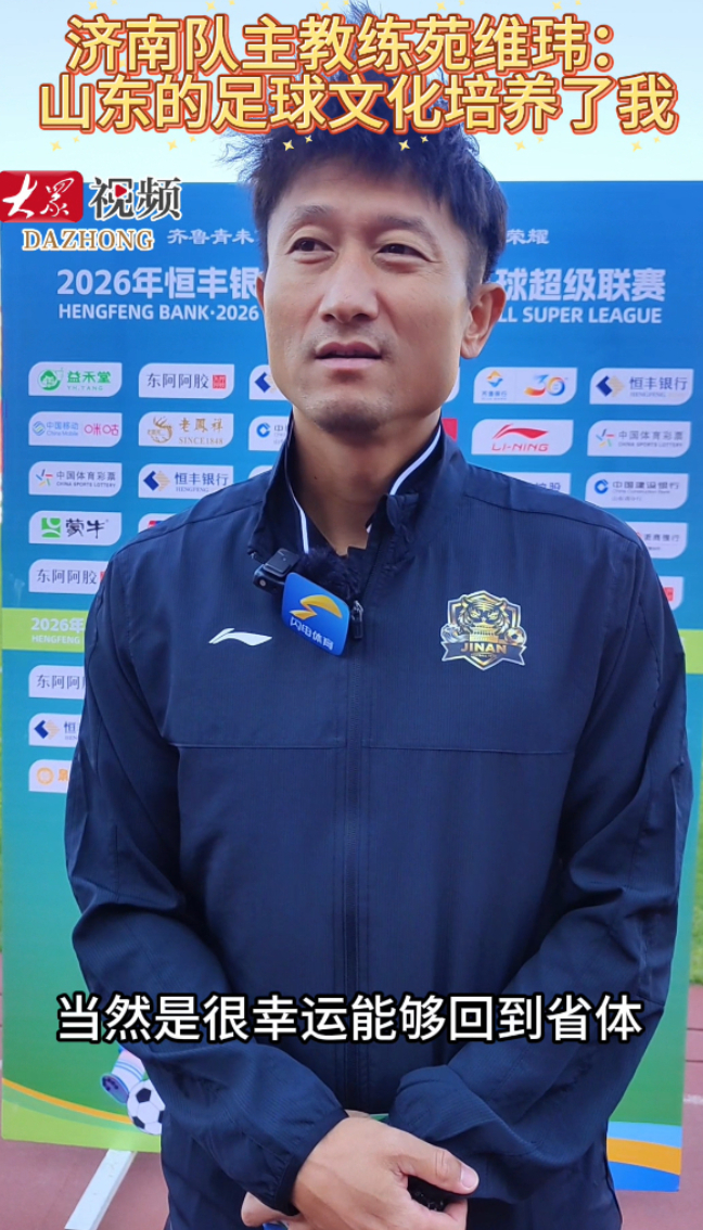 济南队主教练苑维玮:重回省体,感到非常幸运大众新闻 | 昨天22:23 原创大众新闻 微信扫码扫码下载客户端2026年齐鲁超赛济南赛区揭幕战,济南队坐镇主场6比0战胜济宁队,迎来开门红。赛后,济南队主教练苑维玮坦言,以教练身份再次回到省体比赛十分开心,也深感幸运,接下来团队会全力拼好每一场比赛。(大众新闻记者 宫小昀)