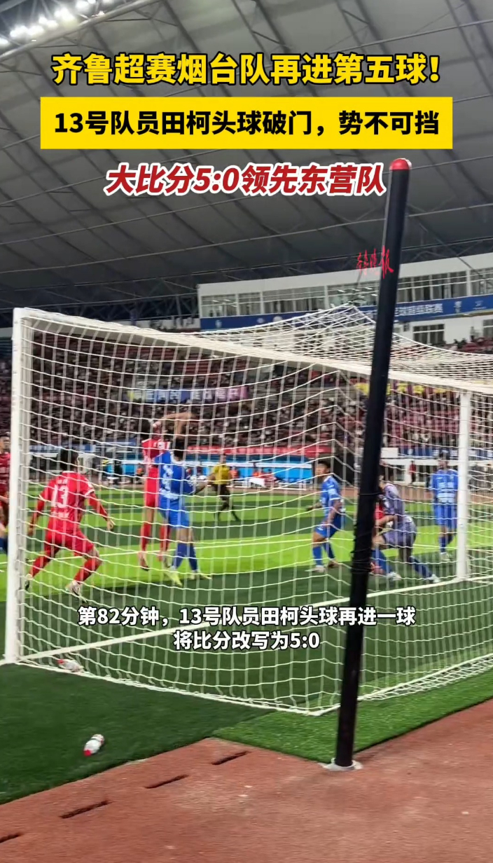 果然视频|13号队员田柯头球破门!齐鲁超赛烟台5:0领先东营齐鲁晚报·齐鲁壹点客户端 昨天22:26原创4月25日,2026齐鲁超赛烟台赛区首场比赛在金都招远体育场打响,烟台队迎来首个主场比赛,对阵东营队。齐鲁超赛烟台队打进第五球!13号队员田柯头球破门,势不可挡,大比分5:0领先东营队。(齐鲁晚报·齐鲁壹点 王琳 钟建军)