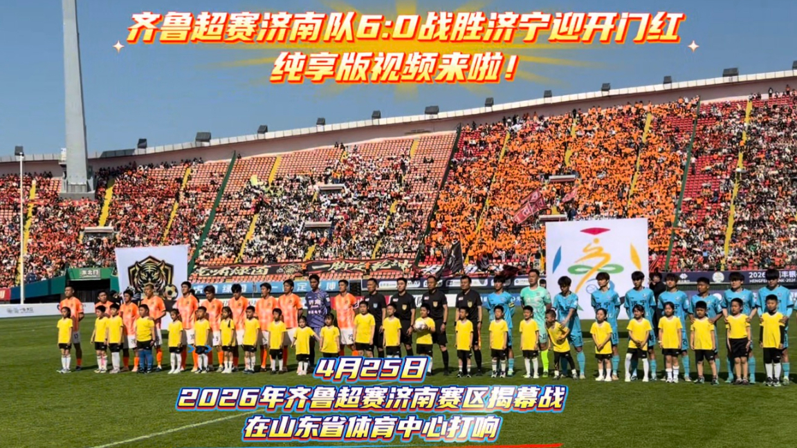 纯享版视频来了!齐鲁超赛济南队6:0战胜济宁队迎开门红大众新闻 | 昨天22:54 原创大众新闻 微信扫码扫码下载客户端4月25日,2026年齐鲁超赛济南赛区揭幕战,在山东省体育中心打响。在全场24025名球迷的呐喊声中,济南队以6比0战胜济宁队迎来开门红。一起跟随视频,感受现场火热氛围吧!
