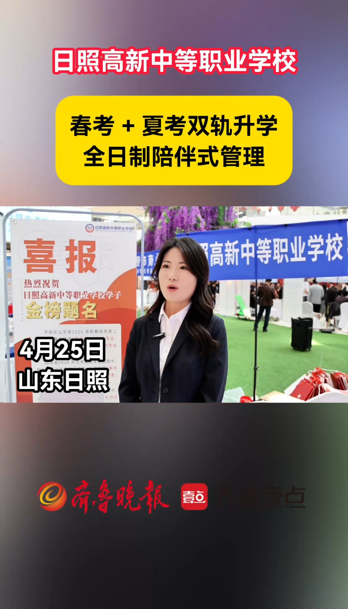 2026日照中招会丨日照高新中等职业学校:全日制陪伴式管理大众报业·齐鲁壹点 10:05日照高新中等职业学校:重点推出春季高考、夏季高考两种升学模式,计划面向应往届初中毕业生招收 500 人,全日制陪伴式管理。