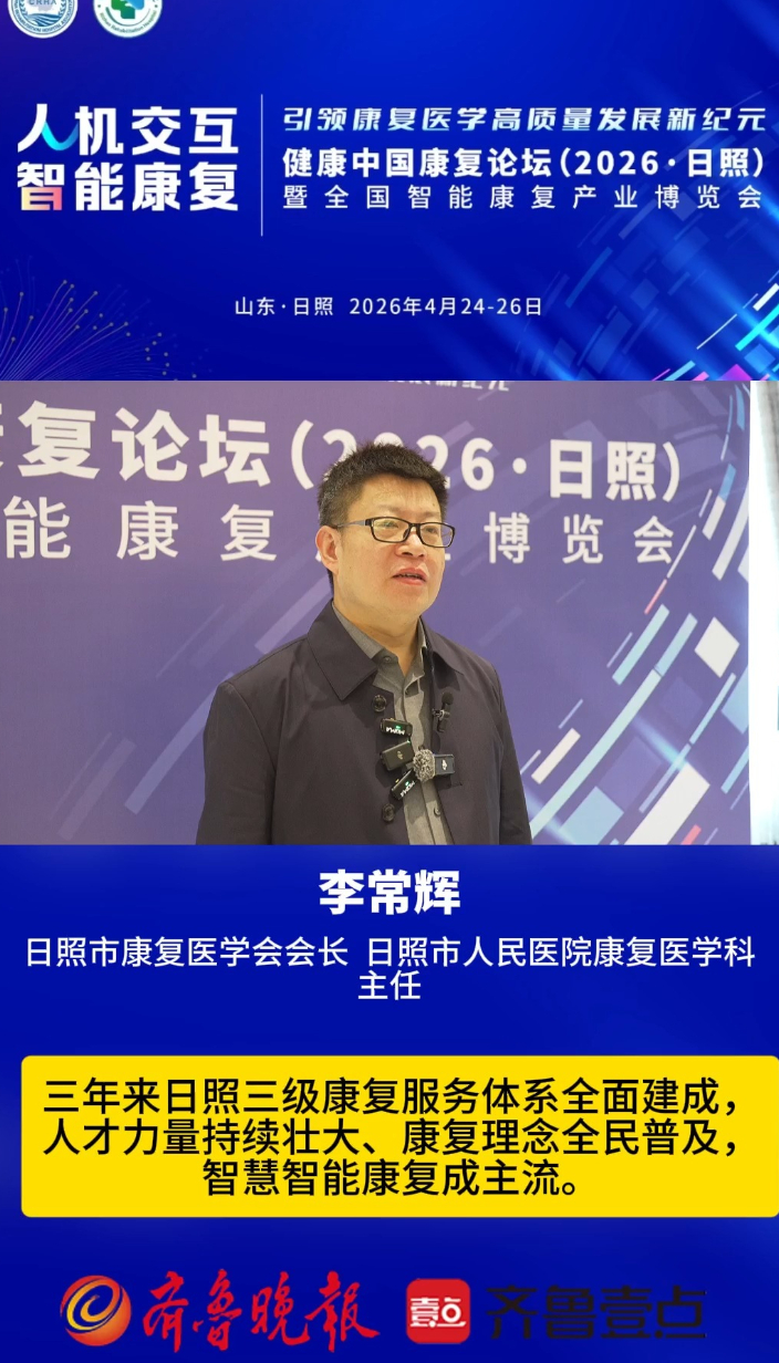 果然视频丨李家辉:三年来日照三级康复服务体系全面建成大众报业·齐鲁壹点 10:064月25日,健康中国康复论坛(2026·日照)在日照市开幕。李家辉表示,三年来日照三级康复服务体系全面建成,人才力量持续壮大、康复理念全民普及,智慧智能康复成主流。(齐鲁晚报·齐鲁壹点 徐艳 邹杰)