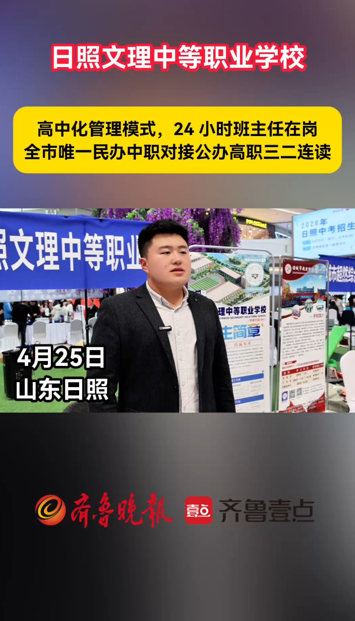 2026日照中招会丨日照文理中等职业学校:精心呵护助学子成长大众报业·齐鲁壹点 10:04日照文理中等职业学校:目前采用高中管理模式,全封闭寄宿制管理,班主任24小时在校。是全市民办中职学校中唯一对接公办高职,开设三二连读培养模式的中职学校。
