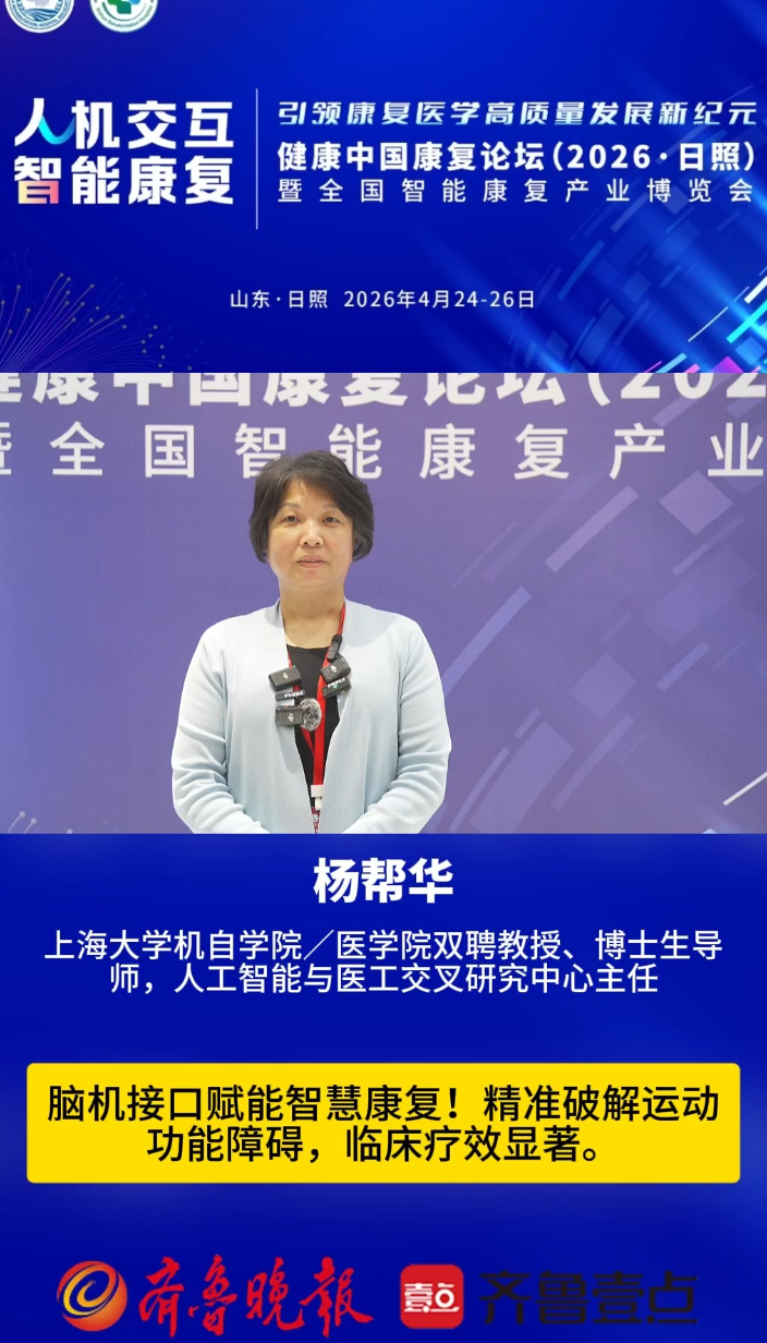 果然视频丨杨帮华:脑机接口赋能智慧康复,精准破解运动功能障碍大众报业·齐鲁壹点 10:064月25日,健康中国康复论坛(2026·日照)在日照市开幕。杨帮华表示,脑机接口赋能智慧康复!精准破解运动功能障碍,临床疗效显著。(齐鲁晚报·齐鲁壹点 徐艳 邹杰)