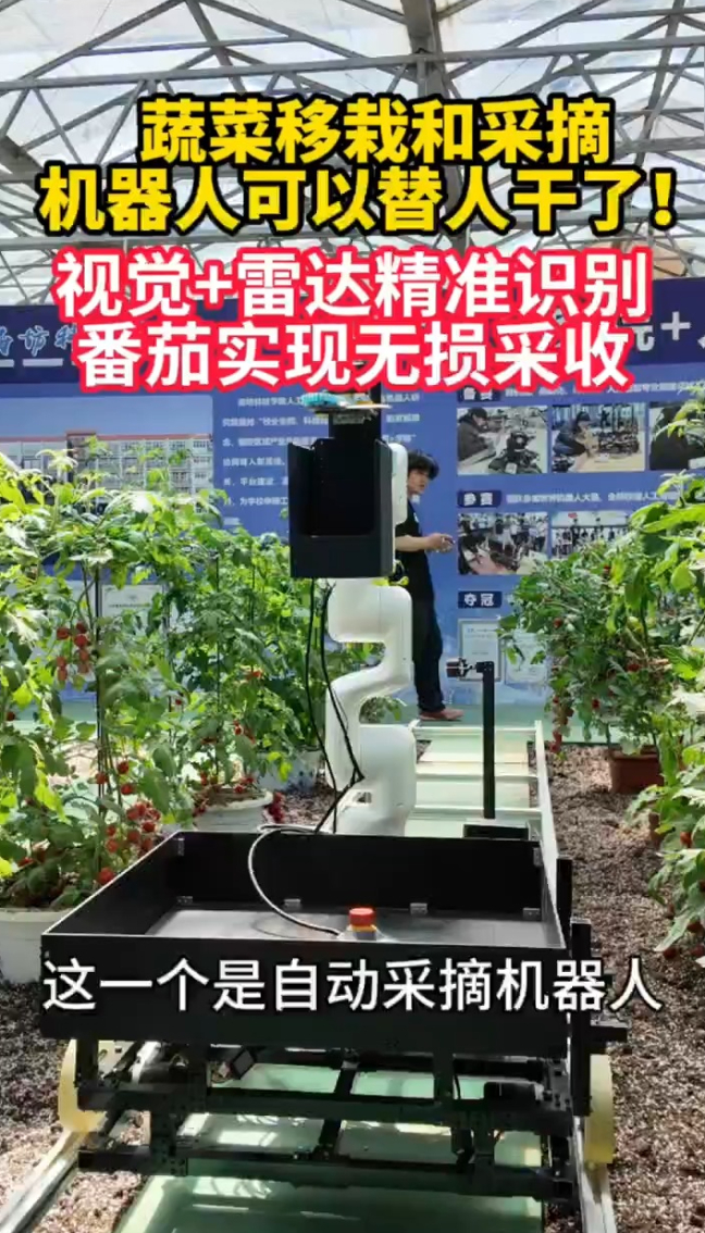 会看苗、会摘果:机器人下田,专治种菜累人工”大众新闻·农村大众 15:47原创蔬菜移栽、采摘等环节用工较多,增加了农业生产成本。针对这个产业痛点,近年来潍坊科技学院人工智能学院相继研发了移栽苗机器人、采摘机器人等设备。一台栽苗机器人,一天可以完成五六个大棚蔬菜苗的移栽。(大众新闻·农村大众报记者 李伟)