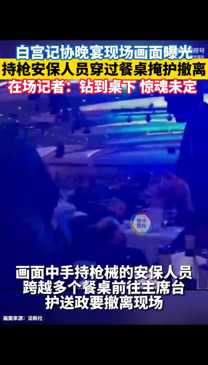 视频|特朗普、万斯撤离白宫记协晚宴现场画面曝光@新华国际 15:43法新社和美国有线电视新闻网美国当地时间25日晚发布视频,曝光当天白宫记者协会晚宴“安全事件”的现场画面。画面中手持枪械的安保人员跨越多个餐桌前往主席台护送政要撤离现场。美国总统特朗普、副总统万斯在安保护送下撤离现场。(@新华国际)