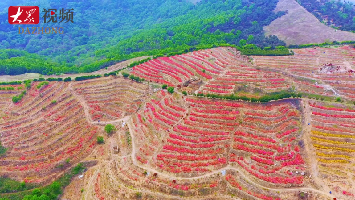 春染山野,繁花盛放。日照马陵水库沿岸,漫山映山红次第绽放,绯红遍野,临水映色,勾勒出春日山野绝美画卷。