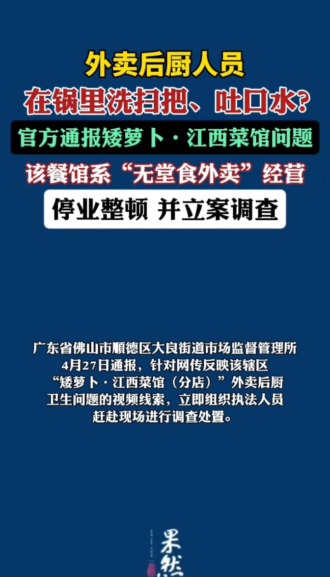 外卖后厨人员在锅里洗扫把、吐口水?官方:停业整顿,立案调查