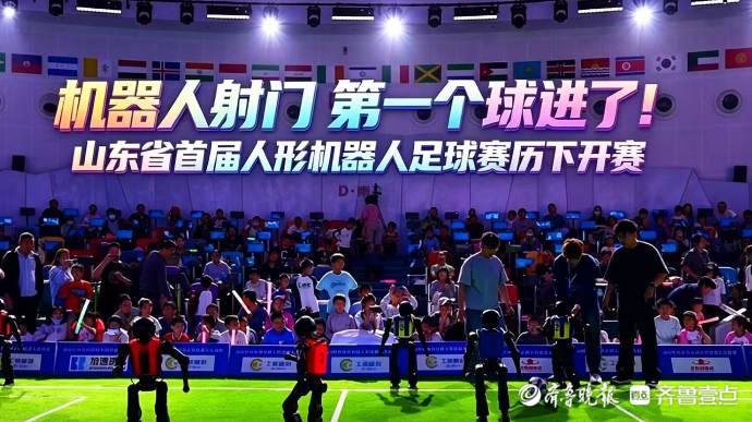 果然视频|科技感十足,山东省首届人形机器人足球赛开赛齐鲁晚报·齐鲁壹点客户端 11:44原创带球快跑,瞄准时机一脚射门,开赛不到10分钟,来自青岛大学钢铁前锋代表队的1号机器人球员踢进了全场第一个球,观众席爆发出热烈的欢呼声。4月26日上午,山东省首届人形机器人足球赛在历下区开赛。