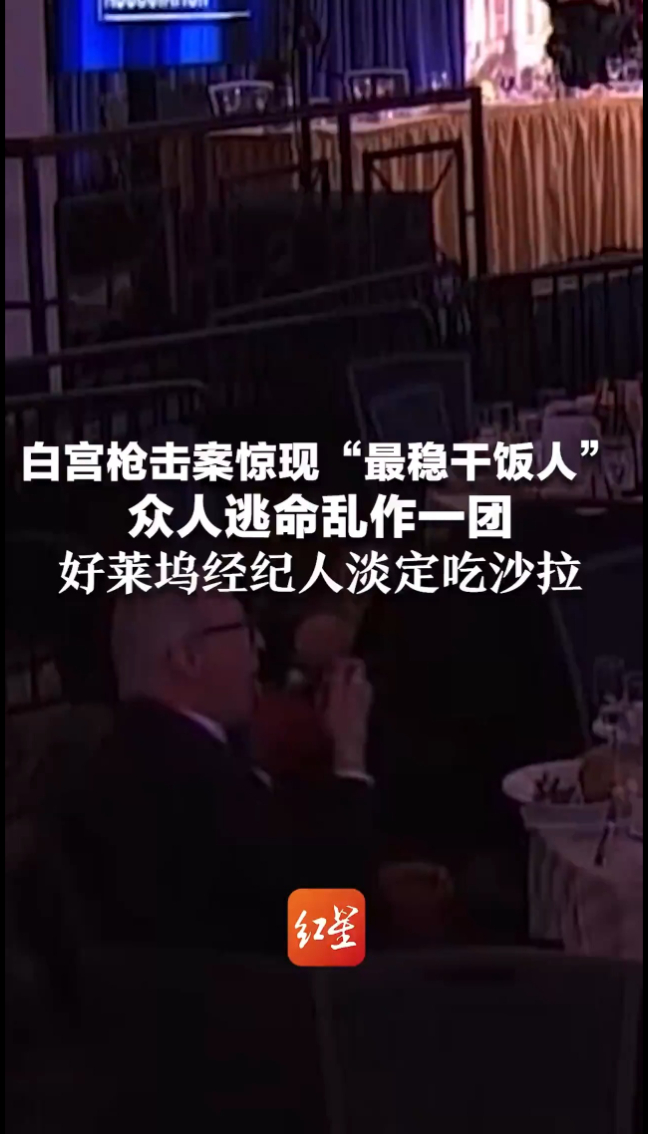 白宫枪击案惊现“最稳干饭人” 众人逃命乱作一团 好莱坞经纪人淡定吃沙拉:这样的场面可不多见红星新闻 14:53谁都不能打扰我干饭!白宫枪击现场乱作一团,好莱坞经纪人却淡定吃沙拉。当地时间4月25日,白宫记者晚宴突发枪击事件,宾客们四散奔逃,疯狂钻桌底之时,好莱坞资深经纪人迈克尔・格兰茨狠狠地出圈:他慢条斯理地吃着桌上的食物,完全无视全副武装的特勤人员。网友笑称:厨师看到这一幕,一定感到无比欣慰。