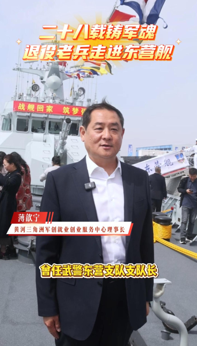 4月23日,在东营舰开放日活动欢迎仪式上,黄河三角洲军创就业创业服务中心理事长、退役军人薄歆宁受邀登舰观摩。拥有28年军旅生涯的他,曾任武警东营支队支队长,长期深耕驻地安保与国防建设一线。