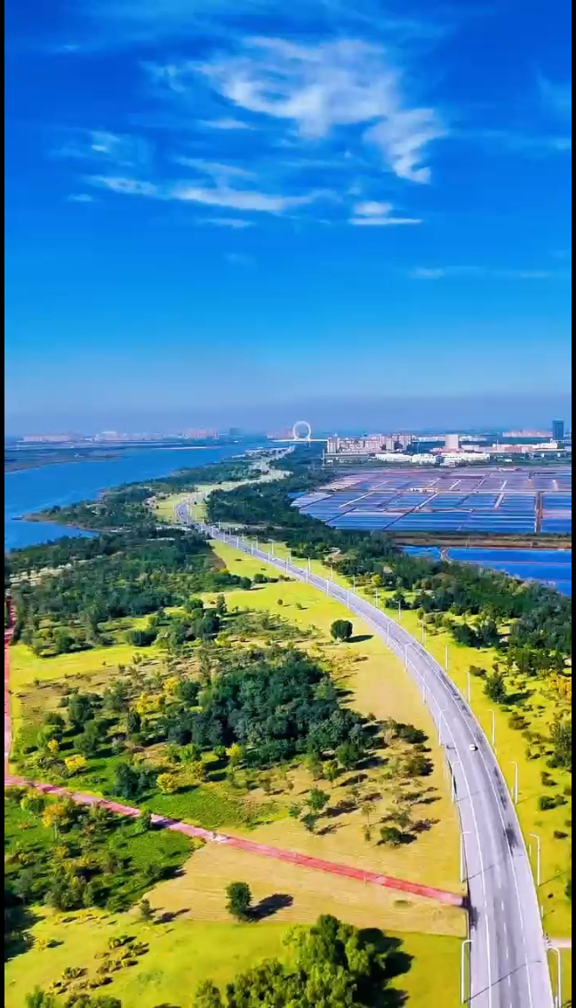 潍坊滨海“最美公路”大众新闻·大众日报 18:56现场潍坊滨海区海汇东路,沿潍坊母亲河——白浪河,一路向北 河海相望, 路面平坦、视野开阔,远眺世界最大的无轴式摩天轮——渤海之眼摩天轮,四季风景各有情趣,春夏交接,蓝天白云,绿草茵茵,吸引了众多市民游客前来骑行追风、拍照打卡,已然成为“网红”最美公路。(大众新闻记者 石如宽 潍坊滨海融媒 王珊 联合共创)