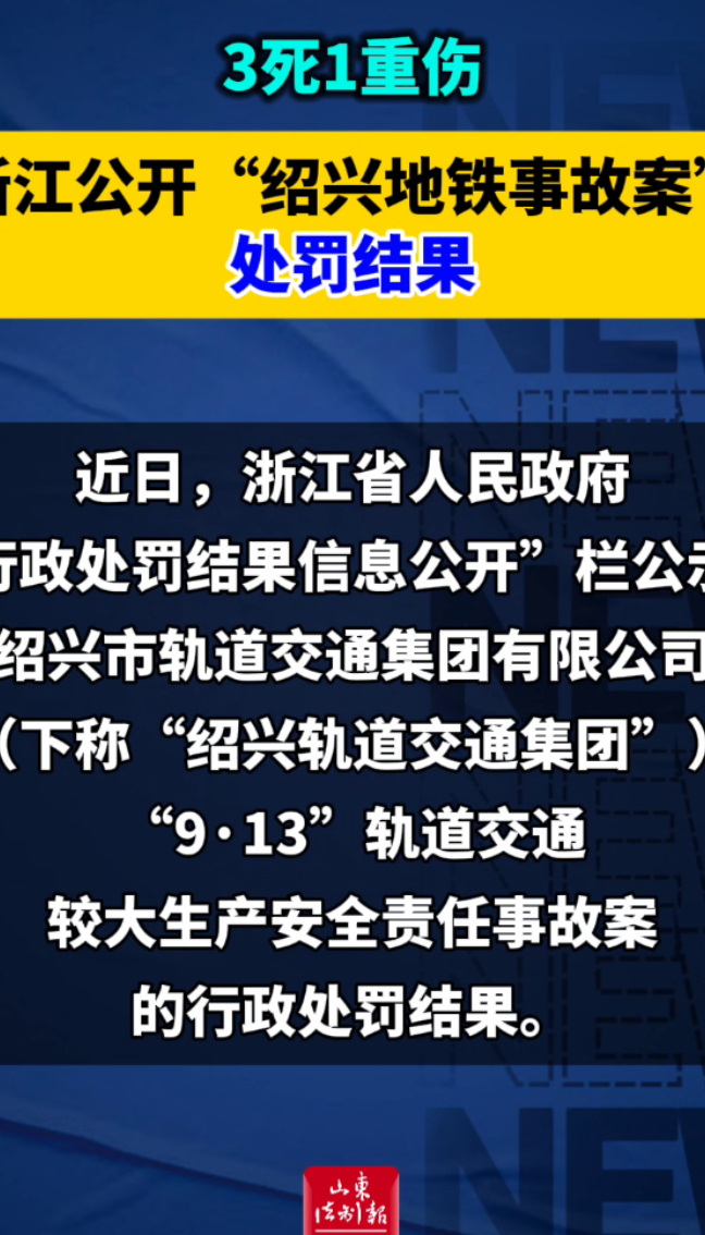 3死1重伤,浙江公开“绍兴地铁事故案”处罚结果