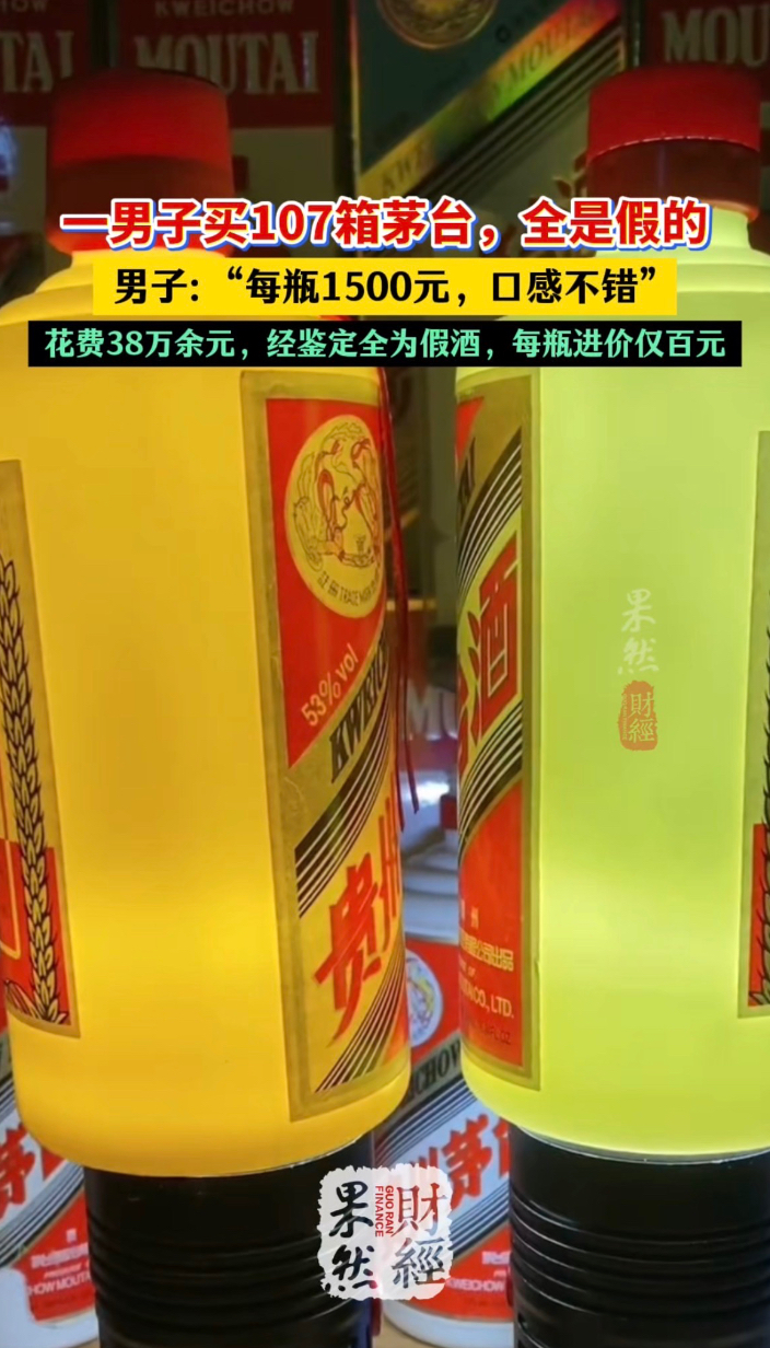 果然财经 | 男子花38万买上百箱假茅台,每瓶进价仅百元 18:26 原创齐鲁晚报·齐鲁壹点客户端 微信扫码扫码下载客户端4月26日,舟山市普陀区检察院公布了一起典型案例。家住舟山普陀的小李,通过微信花费38万余元,购买百余箱“茅台”,经鉴定全为假酒,进价仅百元。小李的上家汪某因销售假冒注册商标商品,被提起公诉。