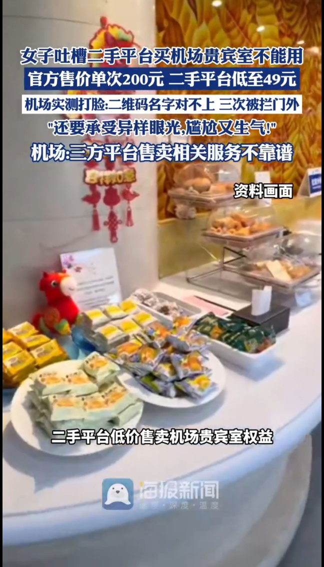 主播说丨女子吐槽二手平台买机场贵宾室不能用 官方售价单次200元 二手平台低至49元