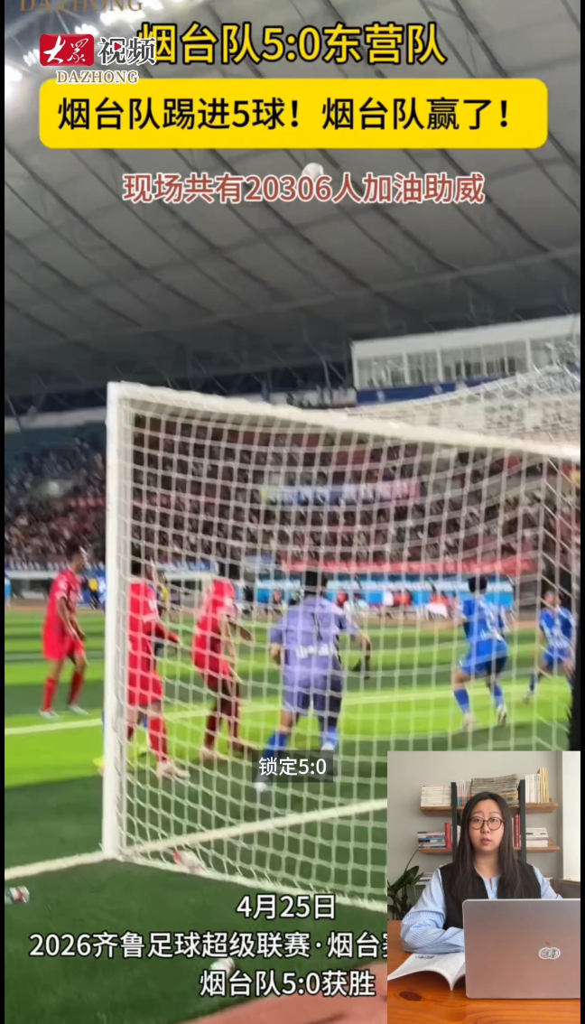 作为连续两年跟进齐鲁超赛的记者,第一次在烟台队的赛场陷入这般“手忙脚乱”。4月25日晚,2026齐鲁超赛烟台赛区首场比赛在招远市热力开赛,烟台队迎战东营队。当记者刚为烟台队首粒进球剪好短视频、配上字幕,看台上的欢呼声已再度炸响,第三球已然应声入网,这样的进球节奏,刷新了记者对烟台队的认知。