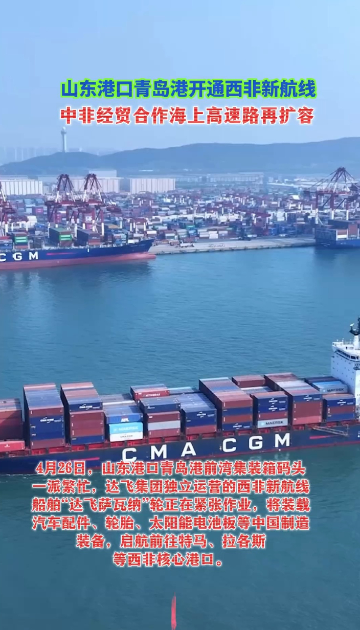 果然视频丨山东港口青岛港开通西非新航线齐鲁晚报·齐鲁壹点客户端 昨天23:24原创4月26日,山东港口青岛港前湾集装箱码头一派繁忙,达飞集团独立运营的西非新航线船舶“达飞萨瓦纳”轮正在紧张作业,将装载汽车配件、轮胎、太阳能电池板等中国制造装备,启航前往特马、拉各斯等西非核心港口。 (齐鲁晚报·齐鲁壹点记者 赵波 实习生 王颖馨)