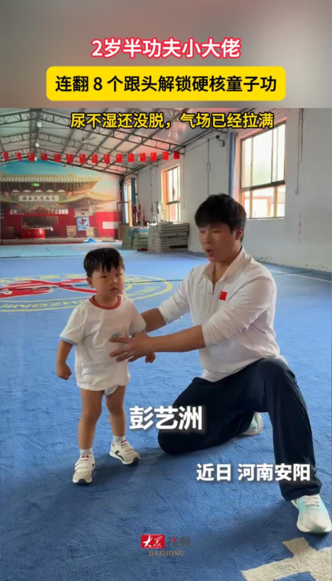 2岁半功夫小“大佬”,连翻8个跟头解锁硬核童子功,尿不湿还没脱,气场已经拉满大众新闻 07:32原创近日,河南安阳,2 岁半萌娃苦练武术。尿不湿还没脱,一口气连翻8个侧手翻,动作行云流水,眼神坚定气场全开。从小在武校耳濡目染,奶声奶气喊 “不怕苦”,小小身躯藏大能量,这才是中华少年的精气神!(大众新闻编辑 刘爽)