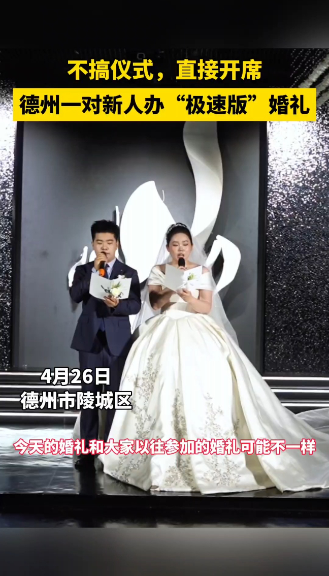 没有专业司仪的刻意煽情,也没有繁琐冗长的仪式环节,宾客到齐,直接开席,主打一个“务实、不折腾”!4月26日,德州市陵城区举办了一场“极速版”极简婚礼。