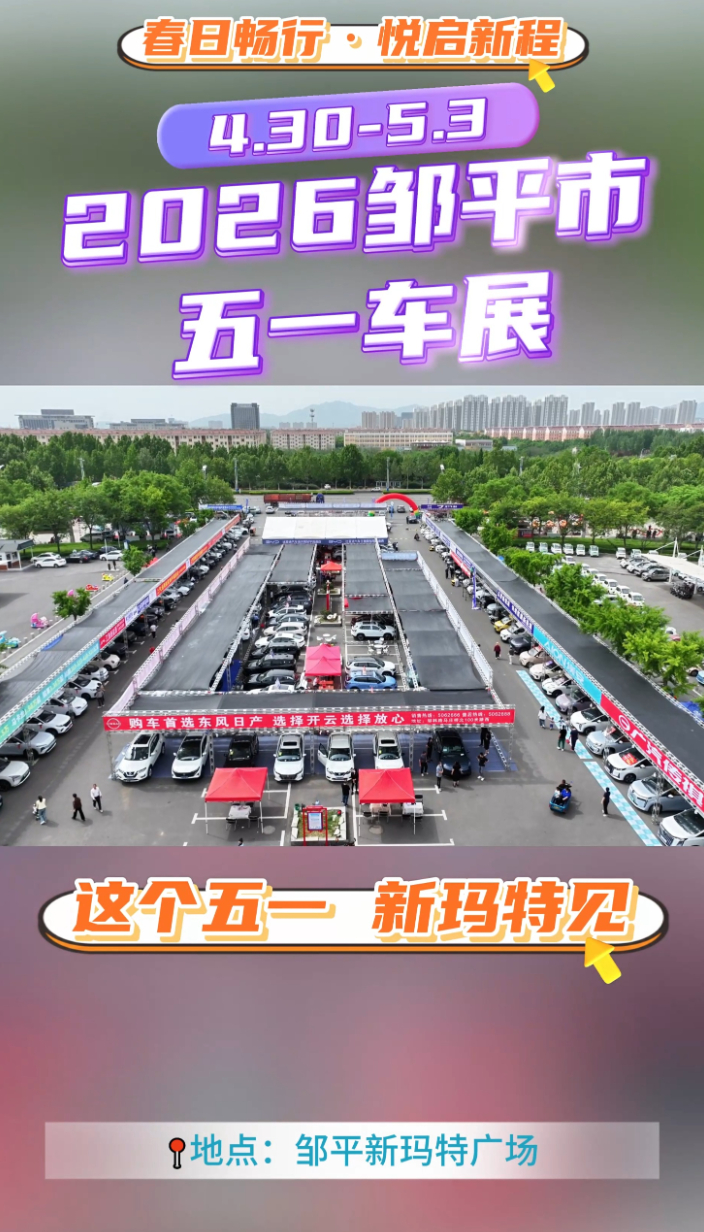 邹平五一车展定车就有专属福利,坐标新玛特广场,不见不散!大众报业·齐鲁壹点 10:12风暖昼长,赴约邹平!五一购车盛宴即将开启,新玛特广场车展,热门车型集结、互动玩法拉满、定车好礼送不停,来pick你的心动座驾!