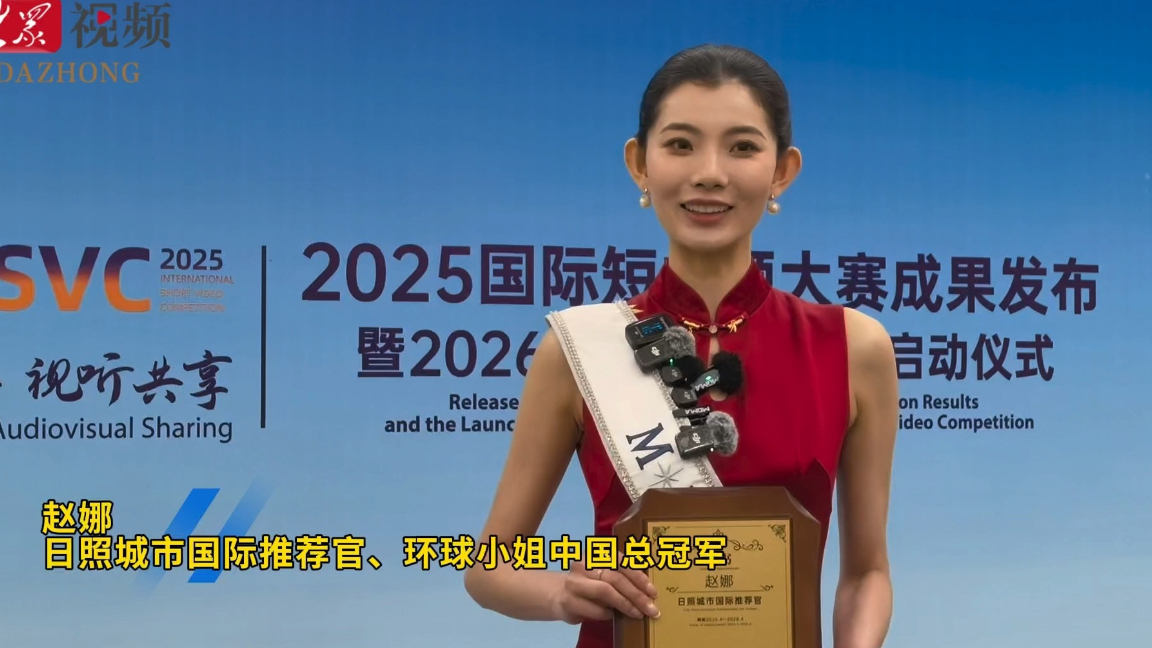 4月28日,2025国际短视频大赛成果发布暨2026国际短视频大赛启动仪式在日照召开。活动现场,环球小姐中国总冠军赵娜等获颁“日照城市国际推荐官”证书。