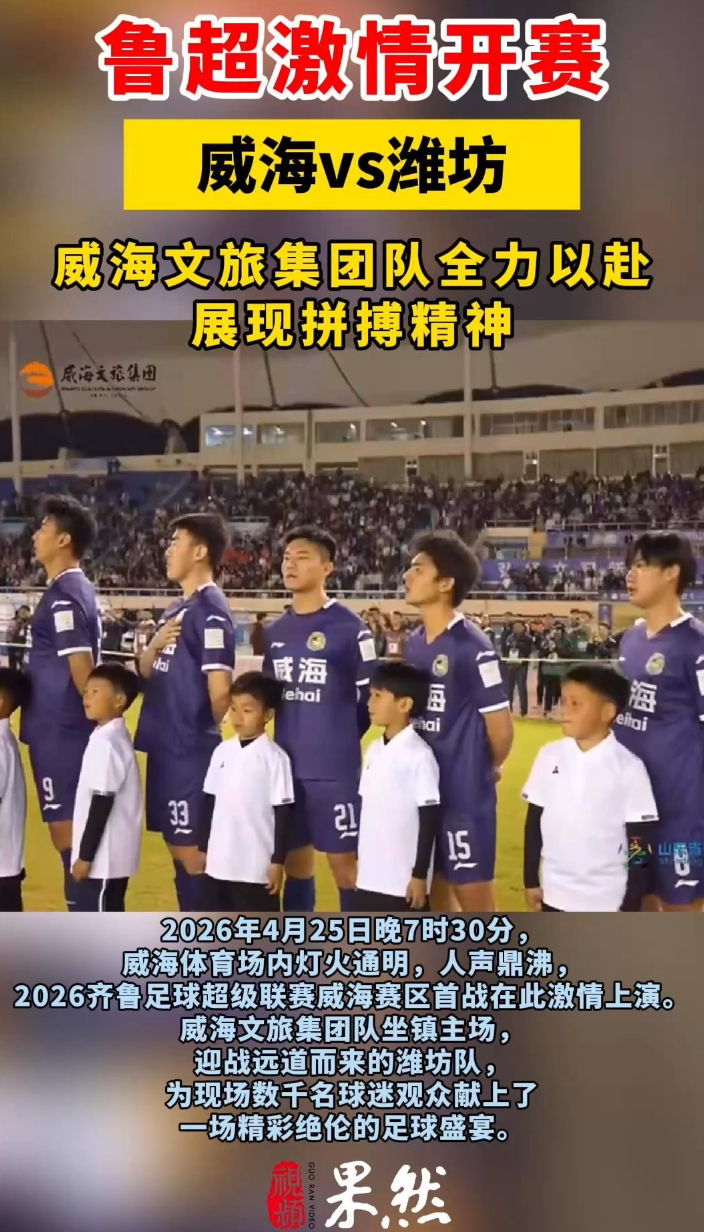 果然视频|鲁超激情开赛,威海文旅集团团队全力以赴大众报业·齐鲁壹点 13:192026年4月25日晚7时30分,威海体育场内灯火通明,人声鼎沸,2026齐鲁足球超级联赛威海赛区首战在此激情上演。威海文旅集团队坐镇主场,迎战远道而来的潍坊队,为现场数千名球迷观众献上了一场精彩绝伦的足球盛宴。 齐鲁晚报·齐鲁壹点 王震