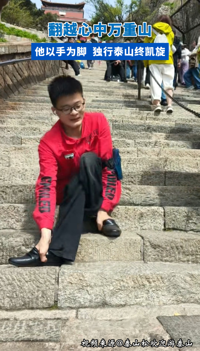以手为脚,独行泰山终凯旋!青科大励志毕业生刘凯旋翻越心中万重山