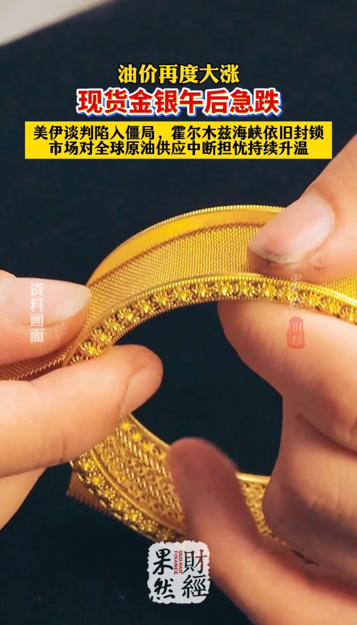果然财经 | 美伊谈判陷入僵局,午后金银急跌,油价大涨! 16:25 原创齐鲁晚报·齐鲁壹点客户端 微信扫码扫码下载客户端当地时间27日,由于美伊谈判陷入僵局,霍尔木兹海峡依旧处于封锁状态,市场对全球原油供应中断的担忧持续升温,国际油价当天上涨。截至收盘,纽约商品交易所6月交货的轻质原油期货价格收于每桶96.37美元,涨幅为2.09%;6月交货的伦敦布伦特原油期货价格收于每桶108.23美元,涨幅为2.75%。当地时间27日,国际金价和银价双双下跌。