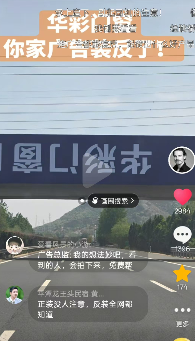 沈海高速烟台福山服务区附近,一处广告牌上下颠倒,引发网友的关注。