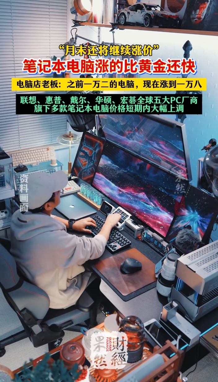 果然财经 | 笔记本涨价比黄金还猛!门店销售:月末还涨 17:04 原创齐鲁晚报·齐鲁壹点客户端 微信扫码扫码下载客户端近日,在社交平台上不少网友直呼,电脑涨价太吓人了!真疯狂啊!据中国经营报报道,联想、惠普、戴尔、华硕、宏碁全球五大PC厂商旗下多款笔记本电脑价格短期内大幅上调,部分产品涨幅高达20%,终端市场已明显感受到价格冲击。