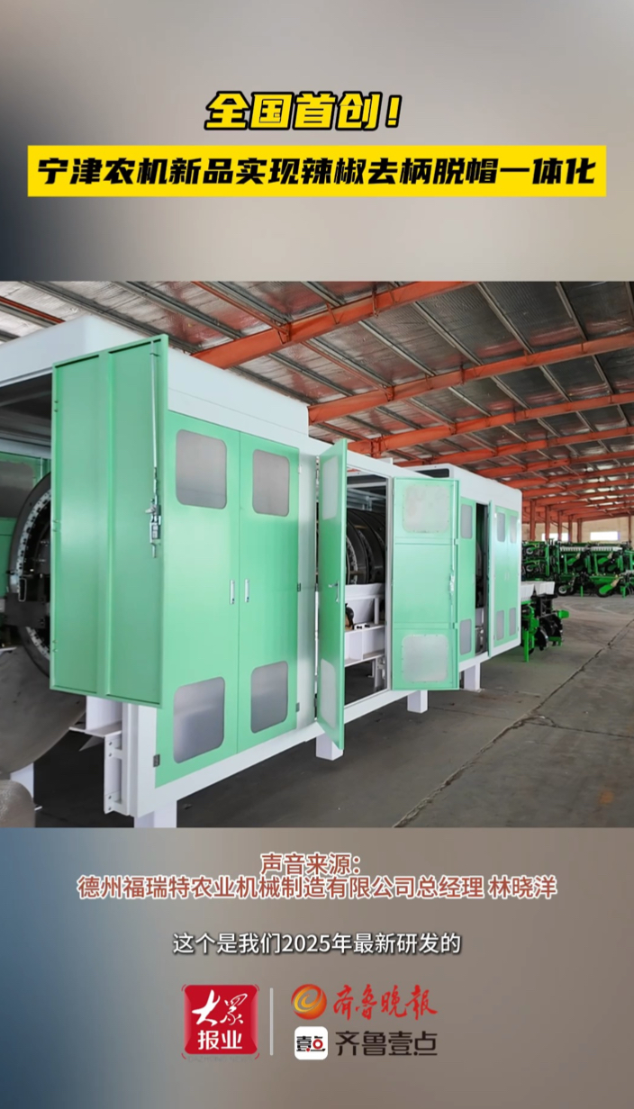 全国首创!宁津农机新品实现辣椒去柄脱帽一体化。(齐鲁晚报·齐鲁壹点 李庆都 李梦晴)