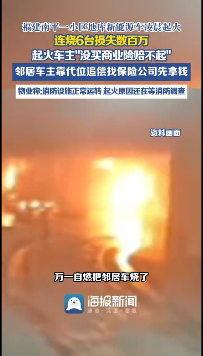 主播说丨福建南平一小区地库新能源车凌晨起火,连烧6台损失数百万