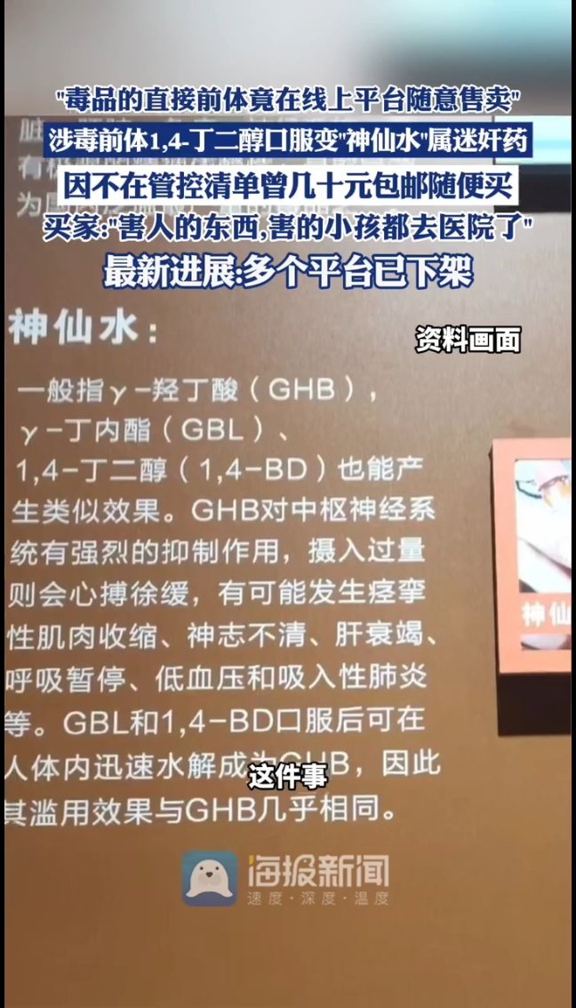 主播说丨“毒品的直接前体竟在线上平台随意售卖” 涉毒前体1,4-丁二醇口服变“神仙水”属迷奸药