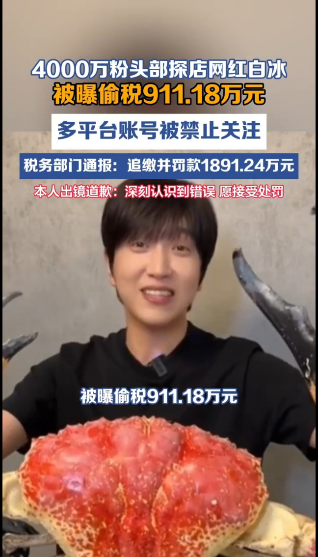 主播说丨4000万粉“探店”网红白冰,偷税超900万元被查!