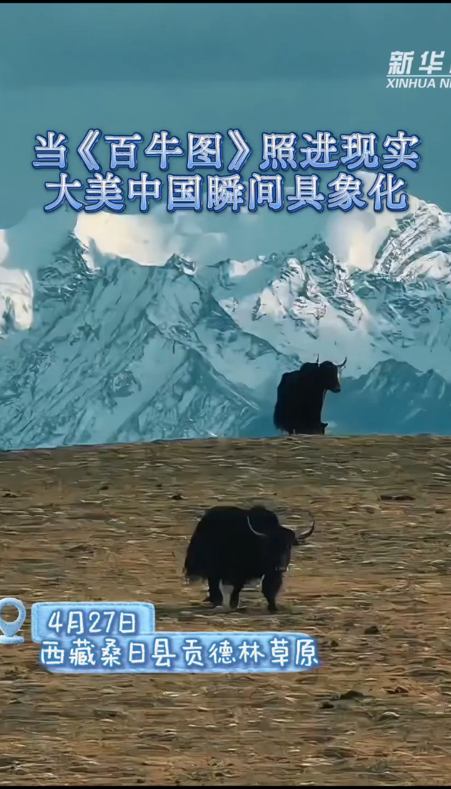 当《百牛图》照进现实 大美中国瞬间具象化新华社 06:484月27日,在西藏桑日县贡德林草原上,百余头牦牛踏风而行。辽阔草原绵延千里,牦牛群自在游走。点点错落,绘就壮阔高原“百牛图”。一瞬定格,大美中国,实景如画。