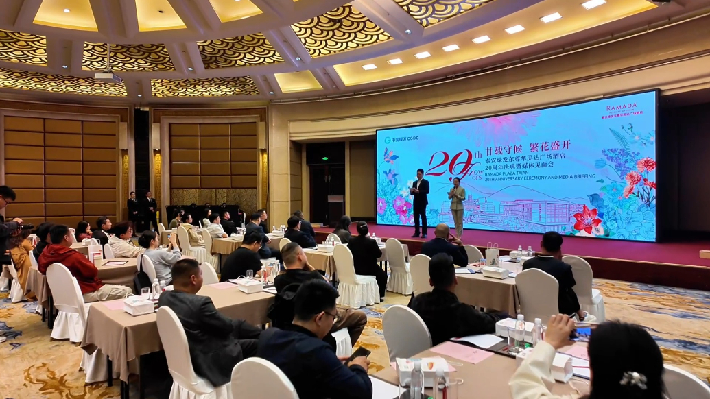 4月28日,泰安绿发东尊华美达广场酒店成功举办“廿载守候,繁花盛开”二十周年庆典暨媒体见面会。
