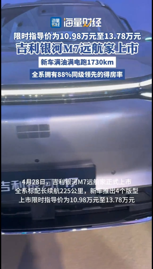海量财经丨吉利银河M7远航家上市!限时10.98万起,满油满电跑1730km