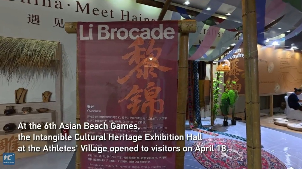 From paper-cutting to Li brocade, athletes from 45 countries and regions explored Chinese intangible cultural heritage at the Athletes' Village during the 6th Asian Beach Games in Sanya.