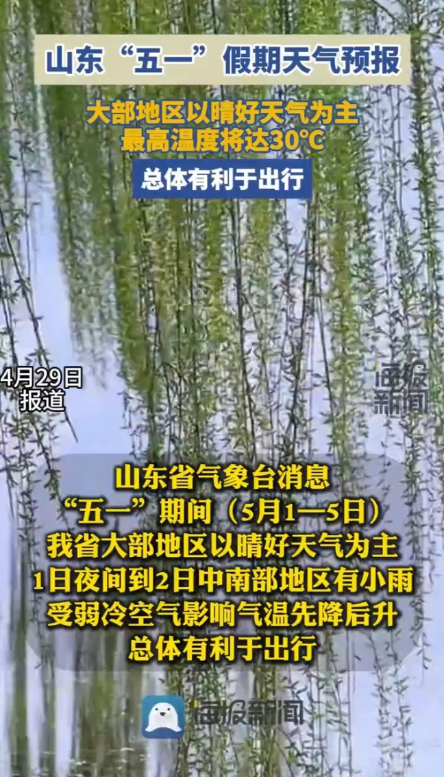 五一假期山东大部地区以晴好天气为主 高温将达30℃