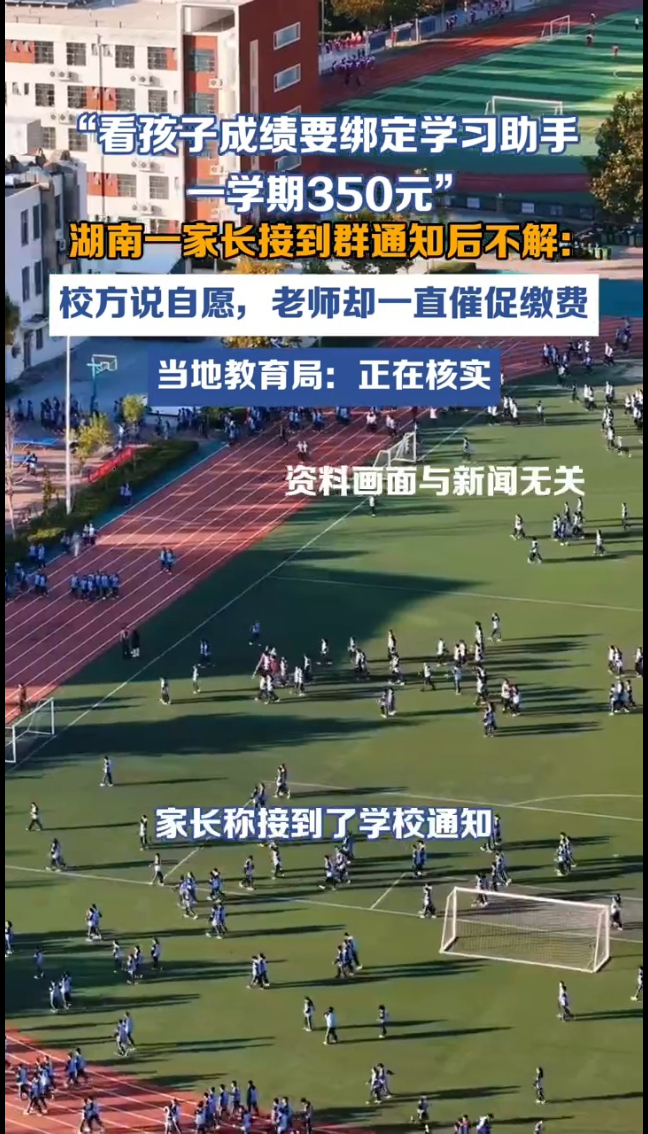 主播说丨“看孩子成绩要绑定学习助手,一学期350元”湖南一家长接到群通知后不解: 校方说自愿,老师却一直催促缴费 18:21 原创大众新闻·海报新闻 微信扫码扫码下载客户端(海报新闻综合紫牛新闻 编辑:刘泽 潘雯 邓云峰)