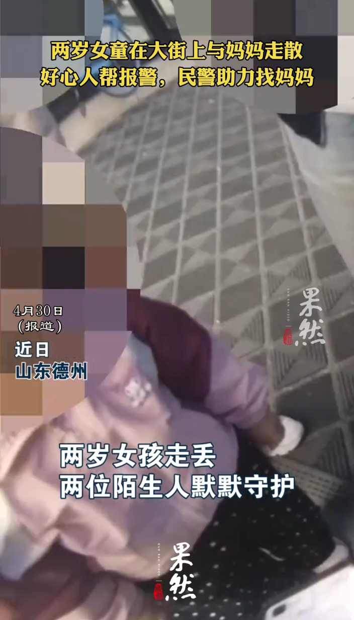 两岁女童在大街上与妈妈走散,好心人帮报警,民警助力找妈妈齐鲁晚报·齐鲁壹点客户端 19:21原创4月30日(报道),在山东德州,两岁女童在大街上与妈妈走散,好心人默默守护,帮忙报警,民警帮孩子找到妈妈。