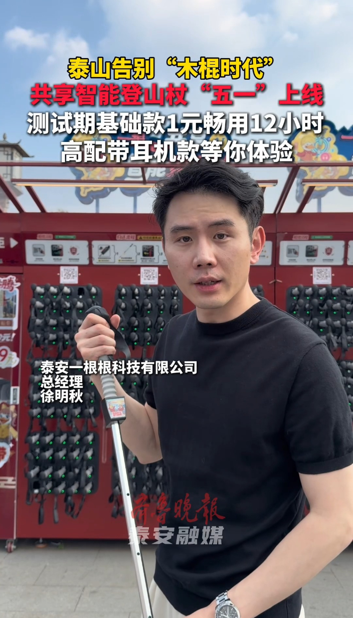 果然视频|泰山告别“木棍时代”,共享智能登山杖“五一”上线,测试期基础款1元畅用12小时,高配带耳机款等你体验