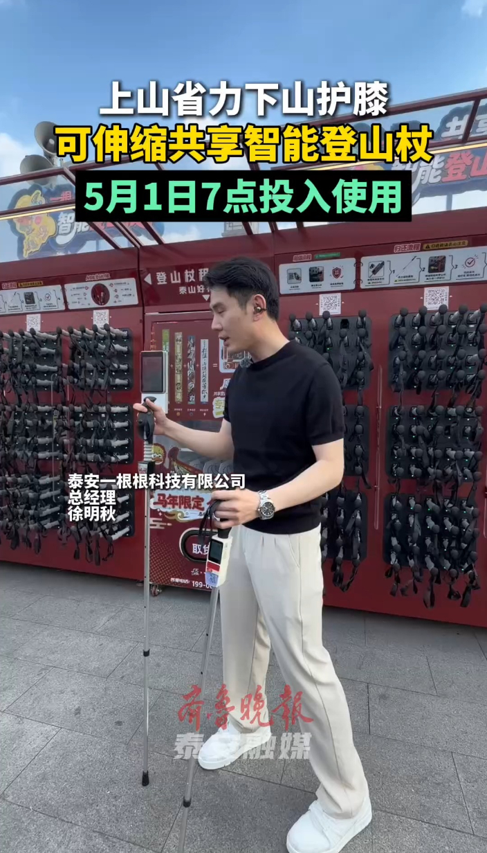 果然视频|上山省力下山护膝,可伸缩共享智能登山杖5月1日投入使用齐鲁晚报·齐鲁壹点客户端 昨天20:29原创齐鲁晚报·齐鲁壹点 徐慧 李增浩 为优化游客登山体验、筑牢林区生态安全防线、强化登山安全保障,泰山景区将在“五一”假期正式上线全系共享标准化登山杖,涵盖基础可调节款与智能黑科技款,彻底告别游客长期使用的劣质木质、铁皮登山杖,开启泰山登山服务全新升级模式。此次上线的共享登山杖秉持公益便民理念,基础款1元可畅用12小时,智能款处于内测期,受邀用户可免费体验。