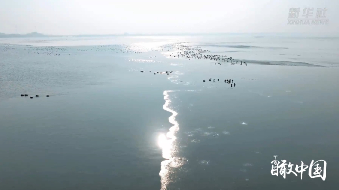 寒冬数九,河北秦皇岛北戴河新区七里海潟湖湿地内,湖面已大面积结冰,形成了一片广阔的冰面,天鹅、绿头鸭等上万只迁徙候鸟停留在此休憩生活。它们时而嬉戏觅食,时而展翅滑翔,时而引颈长鸣,享受这片宁静的天堂。